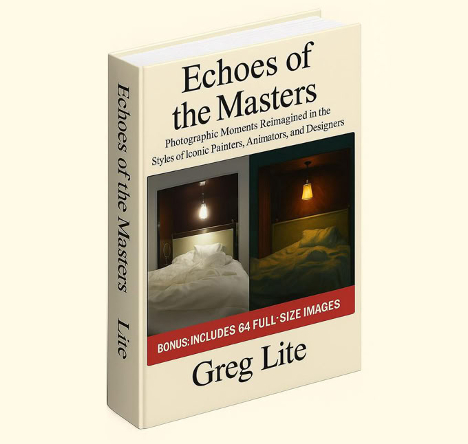 Echoes of the Masters is a groundbreaking collection of AI-assisted photo artistry that reimagines iconic visual styles from history's greatest artists. Each page features an original photograph alongside stunning,